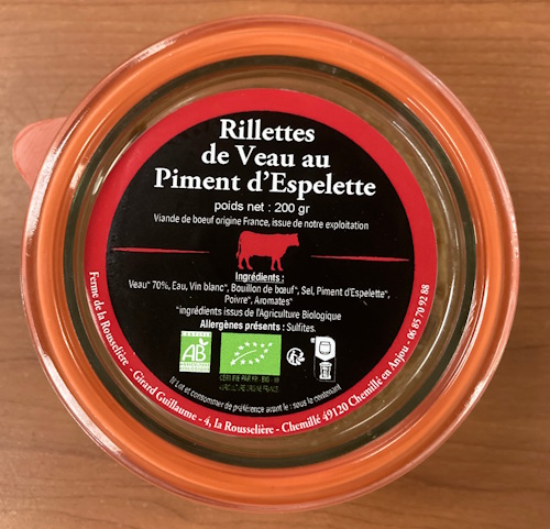 Rillettes de veau bio au piment d’Espelette vous invitent à découvrir une alliance subtile entre tradition française et épices du Pays Basque, le tout dans le respect d’une agriculture biologique responsable. Ingrédients :