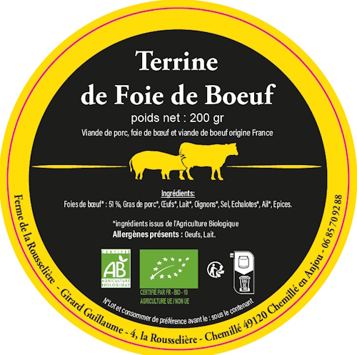 Plongez dans l’expérience savoureuse d’une terrine artisanale, élaborée à partir de foies de bœuf issus de notre élevage bio certifié.